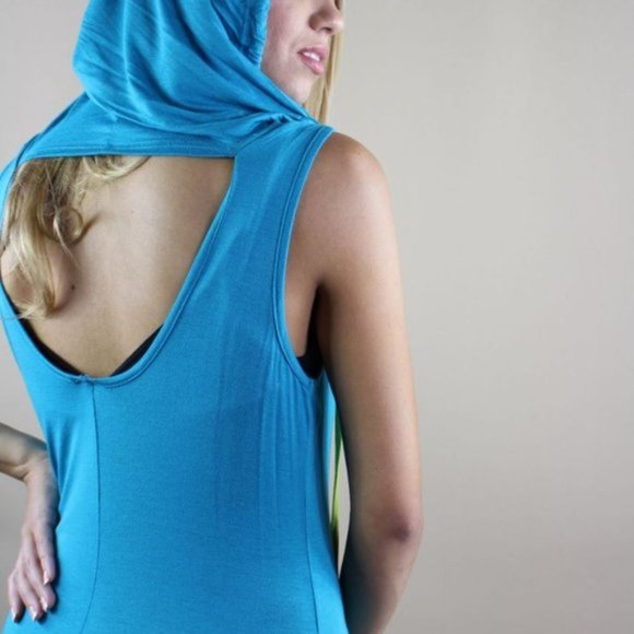 COii Aqua LARGE Sexy Cut-out Back Bodycon Tie Hoodie Sleeveless Maxi