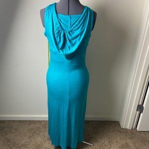 Coii LARGE Aqua Sexy Cut-out Back Bodycon Tie Hoodie Sleeveless Maxi Dress