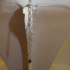 This Carolyn Pollack necklace is truly unique & reversible! There are 5 strands of sterling liquid silver that loop around a beautiful piece of sleeping beauty turquoise. There is a 4" extender, 1" cone endcaps, & a spring ring clasp. All are sterling silver & the .925 hallmark is on the cones. The 'CP" charm dangles from the extender. The deeply bezel set turquoise cabochon measures 10mm x 10mm & it is set on an angle. CP is known for her quality & use of sleeping beauty turquoise.