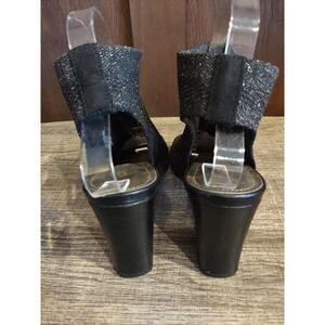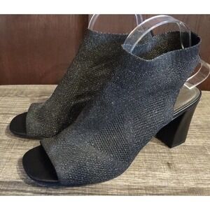 CP Black Open Toed Heels Size 9M Rita Peep toe textile sock block heel Holiday
