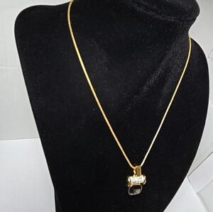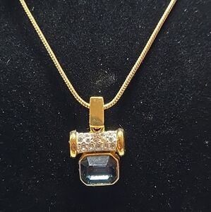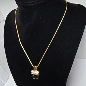 CP Branded Gold Tone Necklace With Large Blue Tone Stone Pendant 16"