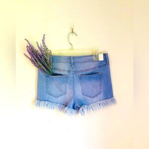 CP Jeans Fringed Denim Shorts Size 7 Light Wash 5 Pockets Stretch