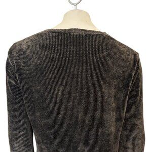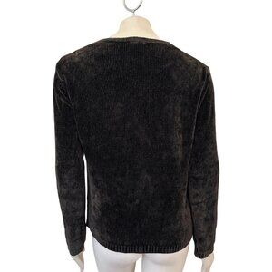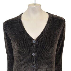 CP SHADES Button Front V-neck Ribbed Chenille Cardigan in Dark Brown SZ S