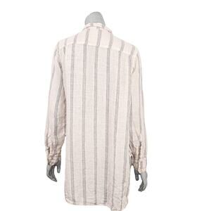 CP SHADES Women's Marella 100% Linen Button up Shirt in Peach Striped Sz Medium