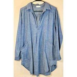 CP SHADES V-Neck Denim Blue Teton Tunic With Pockets Women's XS