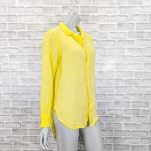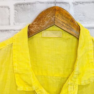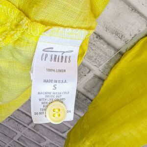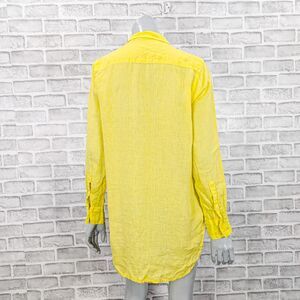 CP SHADES Women's 100% Linen Button up Blouse in yellow hi low long sleeve sz S