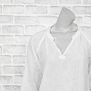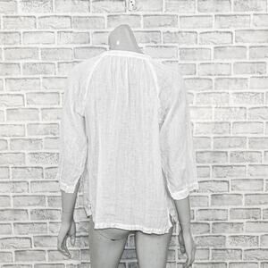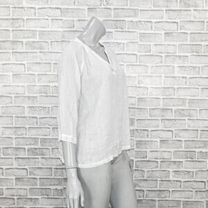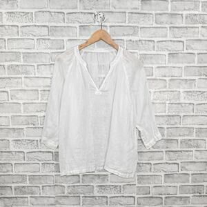 CP SHADES Women's 100% Linen Katie Peasant Top in White Size Small