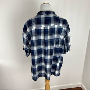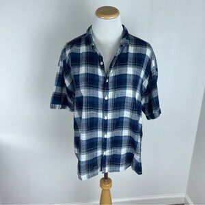 CP Shade Blue and White Plaid Short Sleeve Button Down Top Size M 100% Cotton