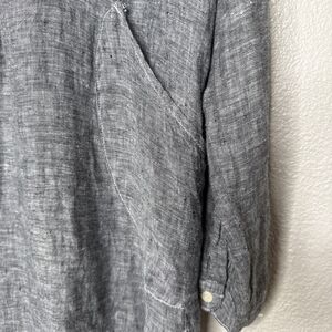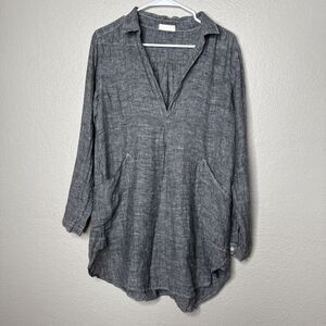 CP Shades 100% Linen Chambray Teton Tunic Blouse Dress Size XS Black Gray Top
