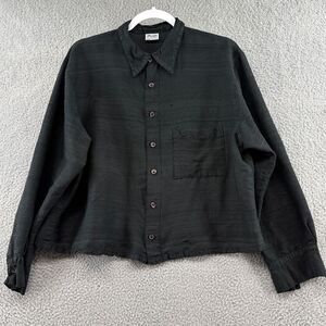 CP Shades Button Down Shirt Black Boxy Cropped Lagenlook size Medium