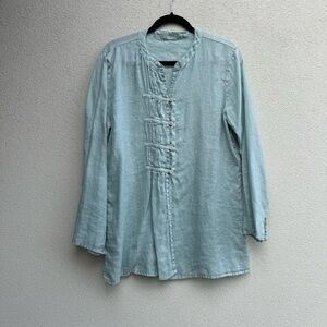 CP Shades Chambray Blue Green 100% Linen Tunic top size Medium