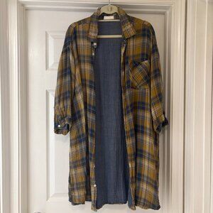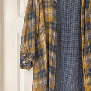CP Shades Cora Double Cotton Gauze Plaid Shirt Dress L