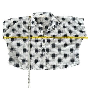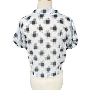 CP Shades Cotton Popover Crop Top. Women’s size XS. White with an all-over square crosshatch pattern. Button front with collar, dolman sleeves, crop length. Boxy, relaxed fit. Super light weight and semi-sheer. Great preowned condition!
