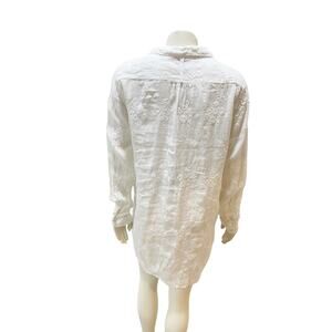 CP Shades Floral Embroidered White Linen Tunic Top Tunics Pockets XS