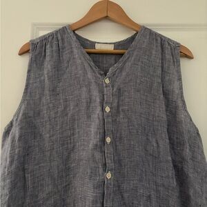 CP Shades Gingham Checkered Linen Button Down Sleeveless Top Lagenlook