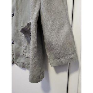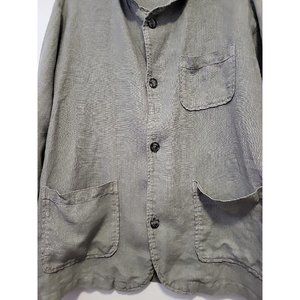 Elevate your wardrobe with this gorgeous CP Shades Linen Blazer in a stunning shade of green. Made in the United States with high-quality linen fabric, this pre-owned blazer is perfect for any occasion - from travel to workwear to casual outings. The relaxed fit and button closure make it comfortable and versatile, while the long sleeves and short length provide a stylish touch.