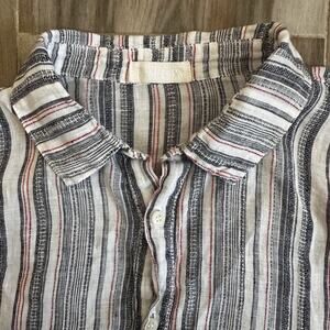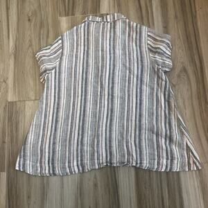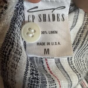 CP Shades Linen Collared Popover Top M Striped White Blue Bohemian Lagenlook