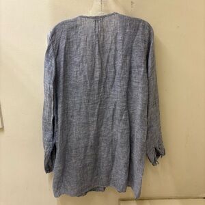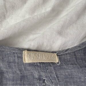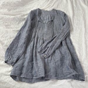 CP Shades MEDIUM Smocked Blue Tunic Dress Long Sleeves flowy 100% linen chambrey