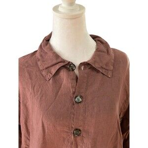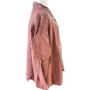 The CP Shades NWT Button Down Tunic in Pure Irish Linen is a stylish and classic women's top in a size M. This solid mauve tunic features a collared neckline, long sleeves, and a button closure, making it a versatile and comfortable piece for any wardrobe. Made in the United States by the reputable brand CP Shades, this high-quality linen tunic is perfect for a casual or dressy look, adding a touch of sophistication to any outfit.