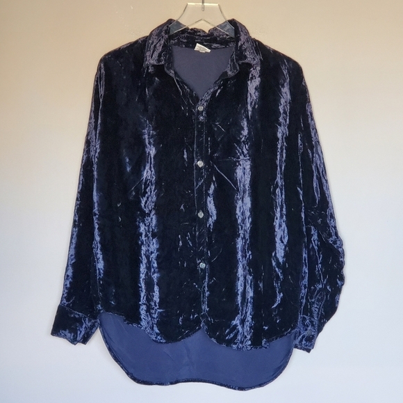CP Shades Midnight Blue Crushed Velvet Button Down Women's Top Shirt in wonderful condition. No flaws. Non smoking, no pet home.