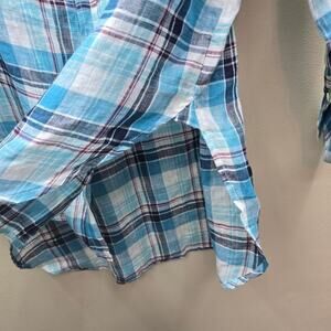 CP Shades Plaid 100% Linen Button Up Tunic Shirt Top Preppy Multicolor SZ Medium