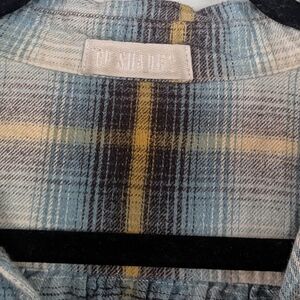 Stylish plaid tunic with a relaxed fit. Features convenient front tilted pockets for a fun flare.