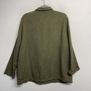 CP Shades Rayon Cotton Linen Jacket Button up oversized green textured S