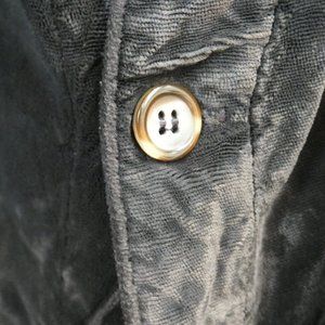 Beautifully designed CP Shades classic blouse with intricate pleats at the shoulders and stunning buttons to highlight this open style. Wear it alone or in place of a light sweater. Dress it up, or wear it Boho style with jeans. The dark gray color and detailed stitching is a standout for any outfit!