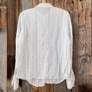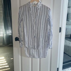 CP Shades Romy 100% Linen Top 1012-5251 Blue/White Striped Oversized High Low Sm
