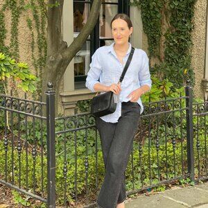 CP Shades Blue and White Striped Linen Button Down Shirt
