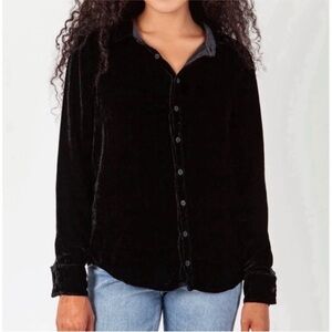 CP Shades Romy Velvet Button Down Shirt Black Size Small