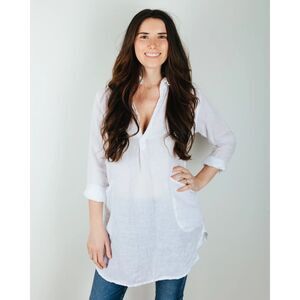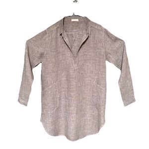 CP Shades Size M Teton Tunic Linen Brown White V-Neck Pockets $242 USA Made