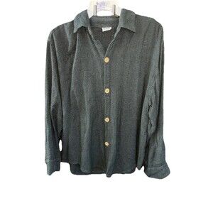 CP Shades Textured Shirt Long Sleeve Button Up S Green Cotton Rayon Flax