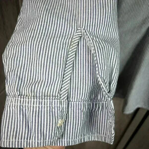 There are a few stains and the button on one of the sleeves is broken - please review the last couple of pictures.