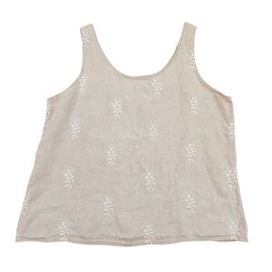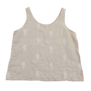 CP Shades Top Womens Small Beige Sleeveless Pure Irish Linen Embroidered Beachy