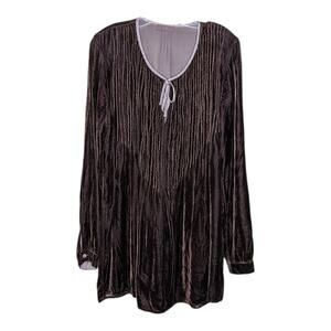 CP Shades Tunic Top Small Regina Velvet Pleated Tie Front Keyhole Rayon Silk Brown