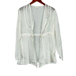 CP Shades White Linen Shirt Jacket Long Sleeve 2-Button Lagenlook Relaxed Size S