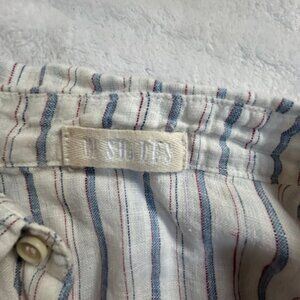CP Shades Womens 100% Linen Striped Button-Up Shirt Large Blue/White Long Sleeve