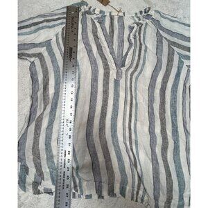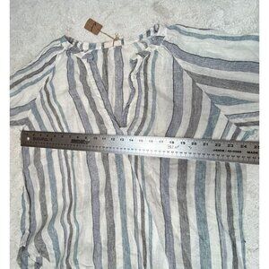 CP Shades Womens Livia Deep V-Neck Popover Top Medium Linen Long Sleeve Striped New