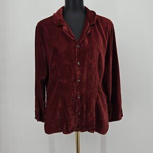 CP Shades Women's Velvet Blouse in Rich Burgundy Fitted Long Sleeve Size Medium