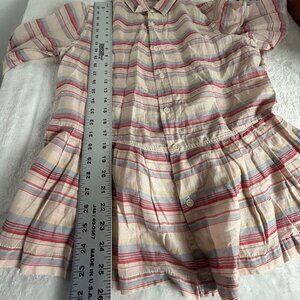 CP Shades Womens XS Striped Button-Up Blouse Cotton/Silk Red/Beige Pleated Hem