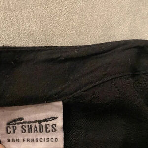 CP Shades sz M black rayon button down blouse w/ brocade floral embroidered