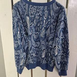 C.P. Sport VTG Floral Paisley Pullover Crewneck Blue Sweater L Cottage Retro