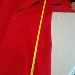 Vintage Central Park International Wool Blend Coat (70% wool, 30% polyamid). Lining is 100% acetate. Dry clean only. Made in Yugoslavia. Size 10. Good condition, normal wear. Smoke free home. Approx 21" from armpit to armpit. 31" length from shoulder to bottom hem. Fun, offset button closure on front. Has extra button holes for different options. "Model" is 5'3" for length comparison purposes only.