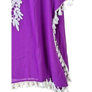 CPOKRTWSO Women Plus size 2X Crochet Chiffon Tassel Swimsuit Beach Cover Up