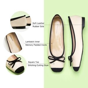 Features a squared-toe ballet flat, a subtle yet distinctive element that adds a touch of modernity to the classic design. The splicing design of the toe and the shoe body presents a structuralist aesthetic.