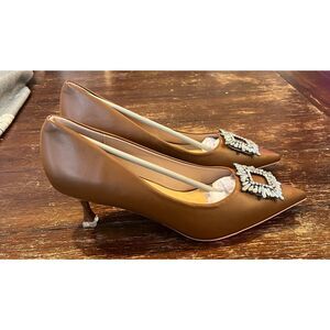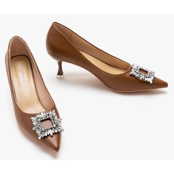 Crystal-Buckle Design:The Kitten heel pumps is adorned with a Crystal buckle embellishment to the toe for a small and exquisite look.