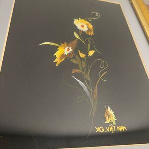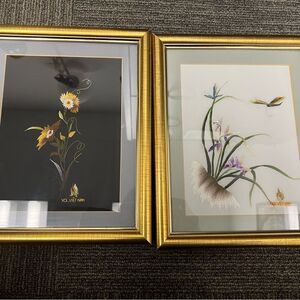 CQ Vietnam Silk Hand embroidered framed floral bird art in frame. Set of two.