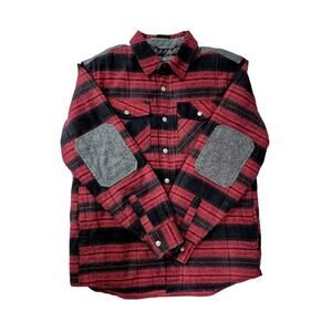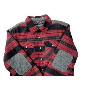 CQR 100% Cotton Shell /Poly Quilted lining -Tactical Shirt-jack Red/Blk/Gry Snap Down Gray quilting across Shoulders & Elbow Patches Flannel Sz L