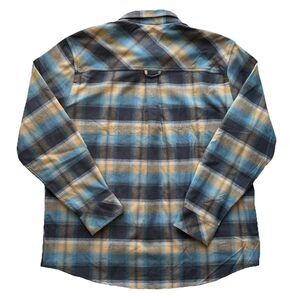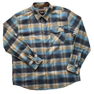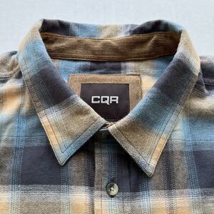 CQR Flannel Shirt Flip Cuff Mens XL 100% Cotton Blue Brown Plaid Button Down Top